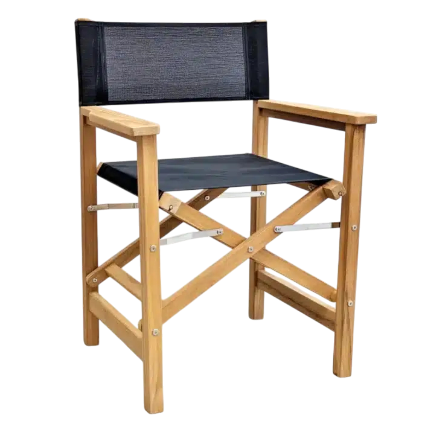 A film industry classic: The Directors Chair No. 1. Crafted from solid teak and weatherproof fabric, this garden chair can be folded and stored away to save space in the winter. The fabric upholstery eliminates the need for seat cushions. The high-quality teak and stainless steel connections make it durable for decades, even outdoors.
