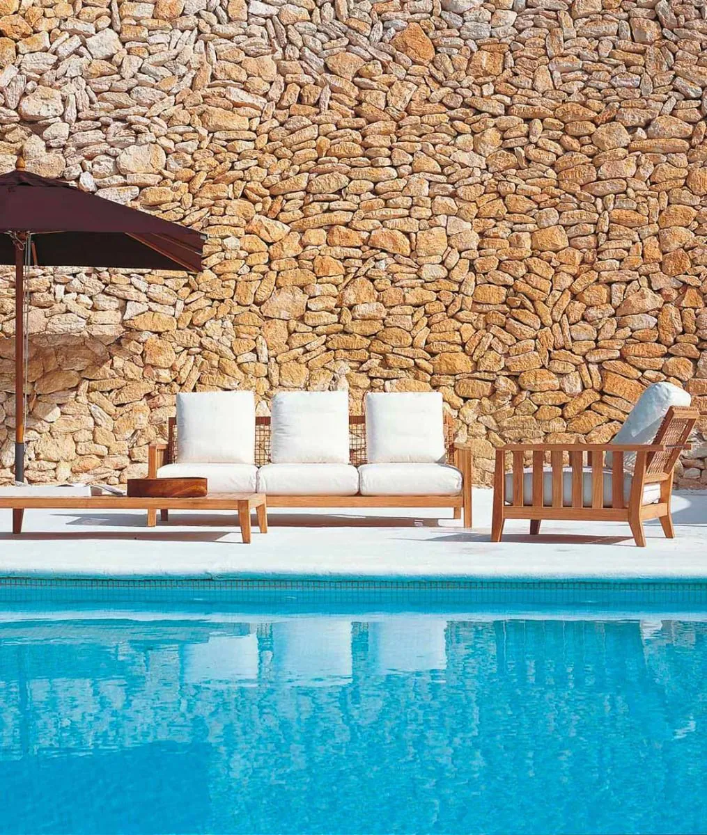 Synthesis Sofa in teak and WaProLace 210 cm.